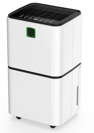 家用除湿机通过风机将潮湿空气抽入机器内部,通过压缩机制冷将蒸发器降温至露点以下,潮湿空气经过蒸发器在表面凝结成水,汇集至接水盘后,流入水箱中,干爽空气经冷凝器重新加热由出风口排出,这样不断循环将室内湿度降低。